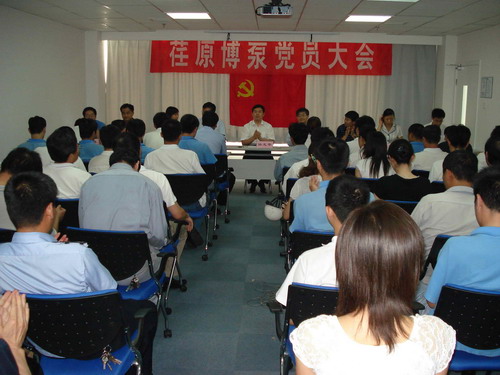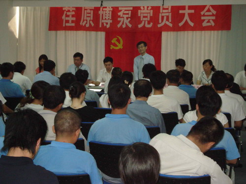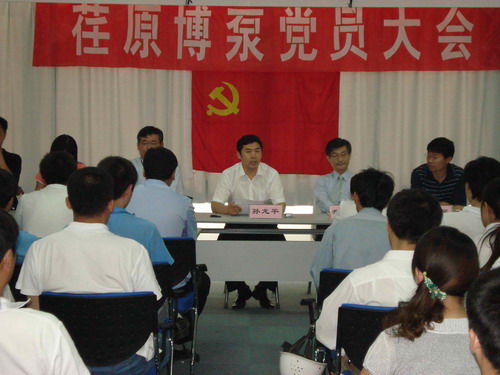 本次黨員大會由黨總支副書記姜作棟同志主持,他首先介紹了黨組織機構的組成:張玉琴同志任黨總支書記,姜作棟同志任黨總支副書記,李正民同志、劉擁民同志、王興春同志分別任統戰委員、組織紀檢委員、文體宣傳委員。荏原博泵黨總支下設管理、生產、質量和業務技術四個黨支部,管理黨支部書記由邱建剛同志擔任,生產黨支部書記由宋遵民同志擔任,質量黨支部書記由郝圣同志擔任,業務技術黨支部書記由梁文運同志擔任。各黨支部通過民主選舉選出了支部委員。在會上,黨總支書記張玉琴同志向全體黨員提出要求,一是加強學習,提高素質;二是增強黨性,努力工作;三是加強領導,發揮作用。著重強調了全體黨員不僅要有較高的政治素質,更要有很強的業務能力和技術水平。要一如既往的發揮黨員的先鋒模范作用,以企業經濟發展為中心任務,身先士卒,帶頭努力干好工作,在營造團結和諧的工作氛圍中發揮作用。公司總經理孫龍平同志在黨員大會上代表行政領導班子作了重要發言,指出目前公司正處在打基礎的關鍵時期,邊建設、邊生產、邊供貨、邊發展。黨組織要充分發揮政治核心作用,領導工會、共青團等群眾組織,團結凝聚廣大員工,貫徹黨的方針政策,促進企業健康發展。