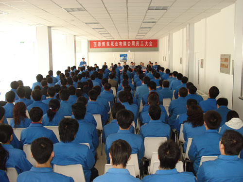 新聞中心 3月1日,在綿綿春雨中,荏原博泵泵業有限公司員工大會在公司餐廳召開。