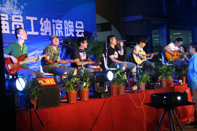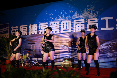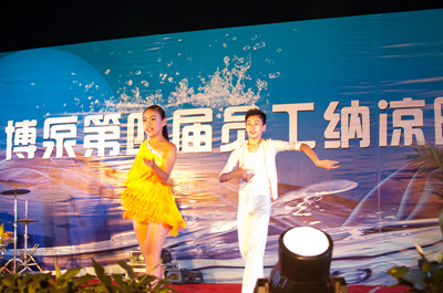 18:30分,晚會節目正式開始,首先在晨曦樂隊激情飛揚的搖滾歌曲聲中拉開了晚會的序幕。晚會節目有獨唱、小合唱、舞蹈等等,演員們的精彩表演,博得了員工們陣陣掌聲和喝彩。特別是生產部門女職工排練的舞蹈,動感十足,展示了女員工的多姿多彩的精神風貌。常務副總經理王正軍的一曲豪邁的《紅旗飄飄》,抒發了荏原博泵員工的愛國情懷;北京事務所的王信東部長帶來了抒情歌曲《別問》;王虹權、袁磊、趙喜鵬、周新菊、肖旭、竇群、蔣祺、張雷雷、徐道義、董旭光等員工先后表演了自己準備的節目;職工子女表演的拉丁舞更是把晚會的氣氛推向高潮。