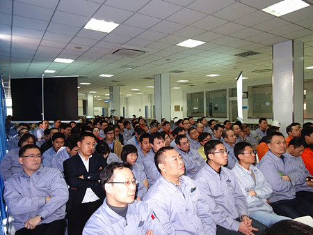 接下來,王總對公司各系統的工作做了詳細的分析:營業方面,訂貨結構有所改善。生產方面:發貨數量創歷史新高;生產效率提高、費用控制也是生產系統的一大亮點。在采購工作中,各個部門的溝通和配合有很大的提高,降低費用成效顯著。焊接工場成立一年半來,成長迅速,超出公司預期;在焊接噸位、員工技能提高、工藝改善等方面有了很大的發展。研發方面:導入PDM管理軟件,出圖質量提高,出圖及時率達到98%以上,圖紙更改率降低。通過與富津工廠及總部的溝通與支持,各項開發課題進展順利。可以自豪的說:目前我公司中開泵性能的競爭力已經在國內不輸任何一家競爭對手,為下一步產品拓展打下了基礎。管理系統方面:PDM管理軟件的應用,ERP系統升級,公司會議系統的開發及各種表單的開發、電腦的更換,為部門效率的提高打下了基礎。辦公樓的改造、5S管理工作的強化等等使公司辦公面貌煥然一新。通過各方面工作的磨練及內外培訓工作的加強,員工的技能、思維方式、行為方式、解決問題的能力等有了很大程度的提高。