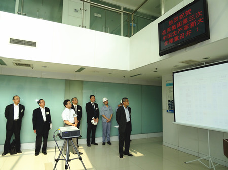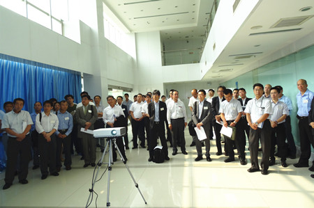 這次生產革新大會的目的是加速推進荏原集團內部各工廠的生產革新活動的開展,目標是生產周期減半、庫存減半、最大限度地提高生產效率,降低成本,增強企業競爭力。通過生產革新活動,達到從現場改善提升到管理系統改善、人的改善的目標,使“產品制作”流程優化。在這次大會上,公司總經理王正軍向與會代表介紹了EMZ的經營發展狀況,并帶領與會人員參觀工廠,詳細介紹了生產革新的進展情況。